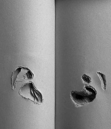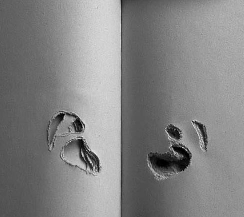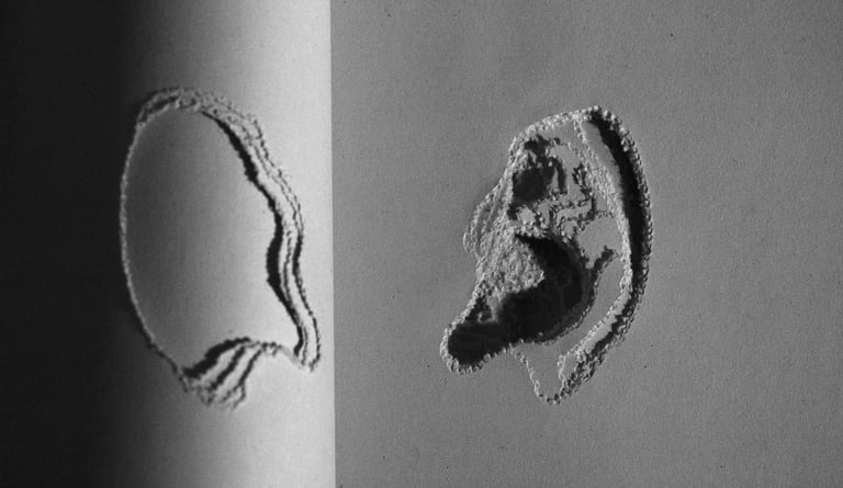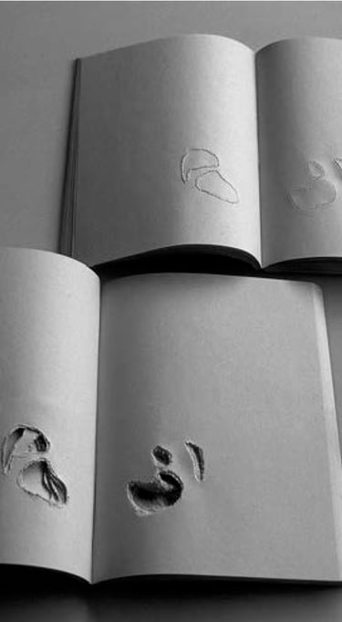 Latomies explore les possibilités qu’offre la sédimentation de couches bidimensionnelles pour parvenir au volume. Il s’agit de proposer au « lecteur » d’arracher sur chaque page d’un livre blanc, des pièces prédécoupées dans le papier, et, ce faisant, de découvrir une cavité évoquant le creux d’une oreille.